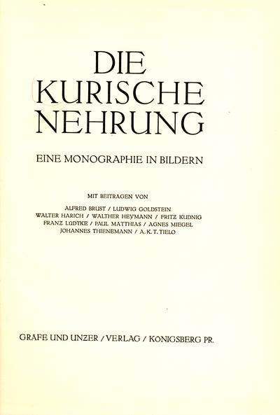Brust, Alfred, 1930. Die Kurische Nehrung: Eine Monographie in Bildern. 1. Auflage, 1.-5. Tausend - Königsberg in Preußen: Gräfe & Unzer